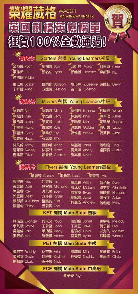 恭喜所有通過劍橋英檢的學生!你們太棒了!
